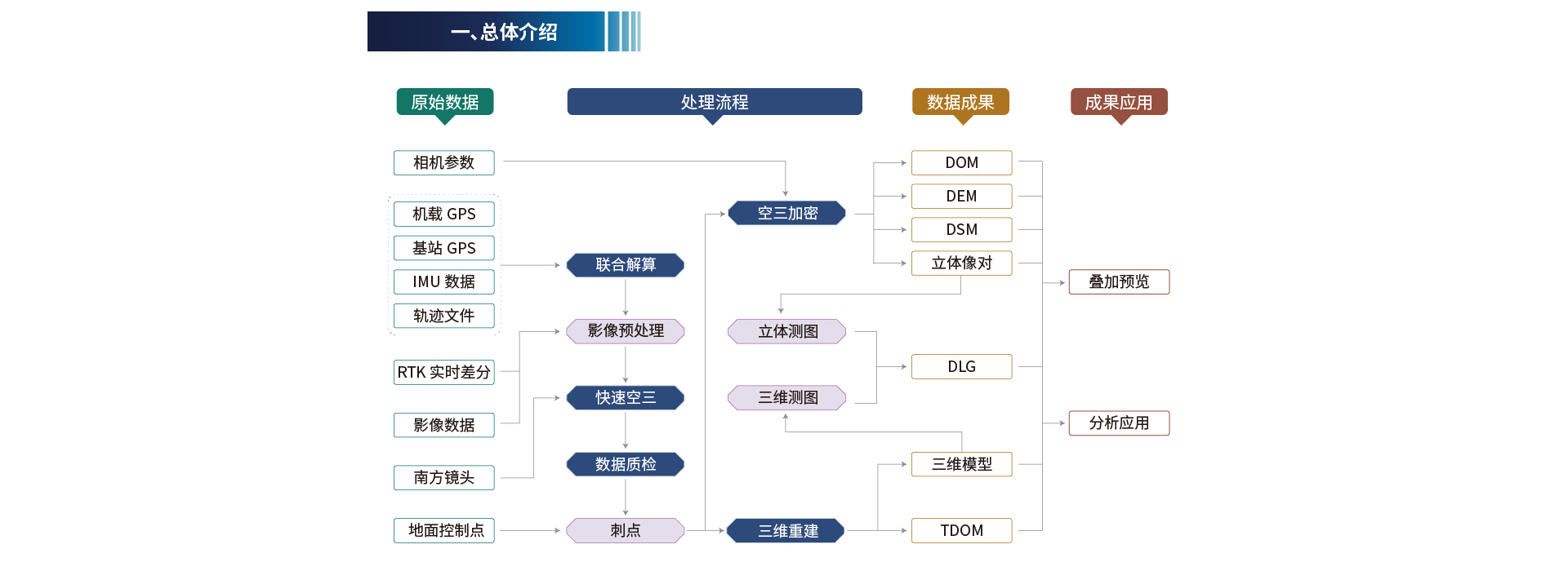 SouthUAV2.0南方航測一體化平臺軟件系統(tǒng)旨在實現(xiàn)針對航測數(shù)據(jù)的全流程一體化作業(yè)全覆蓋,提供航測數(shù)據(jù)預(yù)處理、空三加密生成傳統(tǒng)4D產(chǎn)品、三維模型數(shù)據(jù)的生產(chǎn)、基于實景三維模型或立體像對采集DLG、航測成果數(shù)據(jù)疊加瀏覽應(yīng)用的整體解決方案。所有航測數(shù)據(jù)處理的相關(guān)工作都可在本軟件內(nèi)對應(yīng)的模塊進行,極大保障用戶數(shù)據(jù)處理的連貫性,避免在不同軟件間進行頻繁切換的繁瑣操作,有助于保持數(shù)據(jù)及流程的完整性與準確性,節(jié)省用戶處理數(shù)據(jù)的時間,提高整體生產(chǎn)效率。